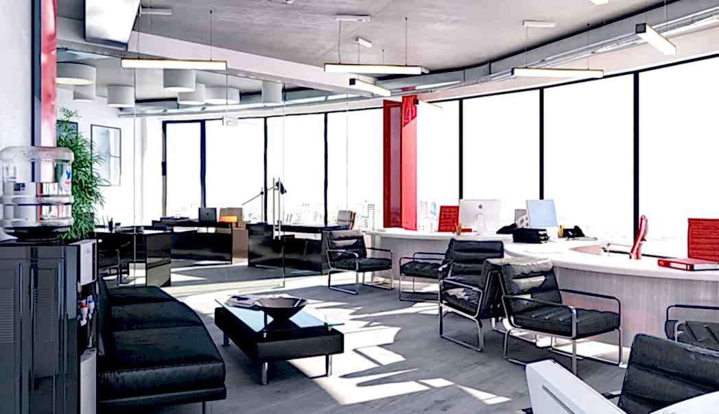Задача: на основе брендбука и действующих школ создать интерьер, где будут находиться кабинет директора, несколько менеджеров и класс для обучения студентов, также разместить тренажер для вождения.